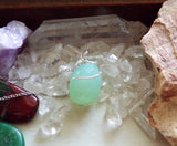 Aqua Chalcedony Gemstone Crystal Wire Wrapped Pendant Necklace