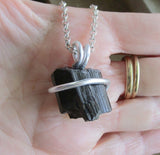 Black Tourmaline Raw Gemstone Crystal Pendant Necklace