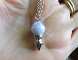 Blue Lace Agate Crystal Ball Spike Pendulum Pendant Necklace